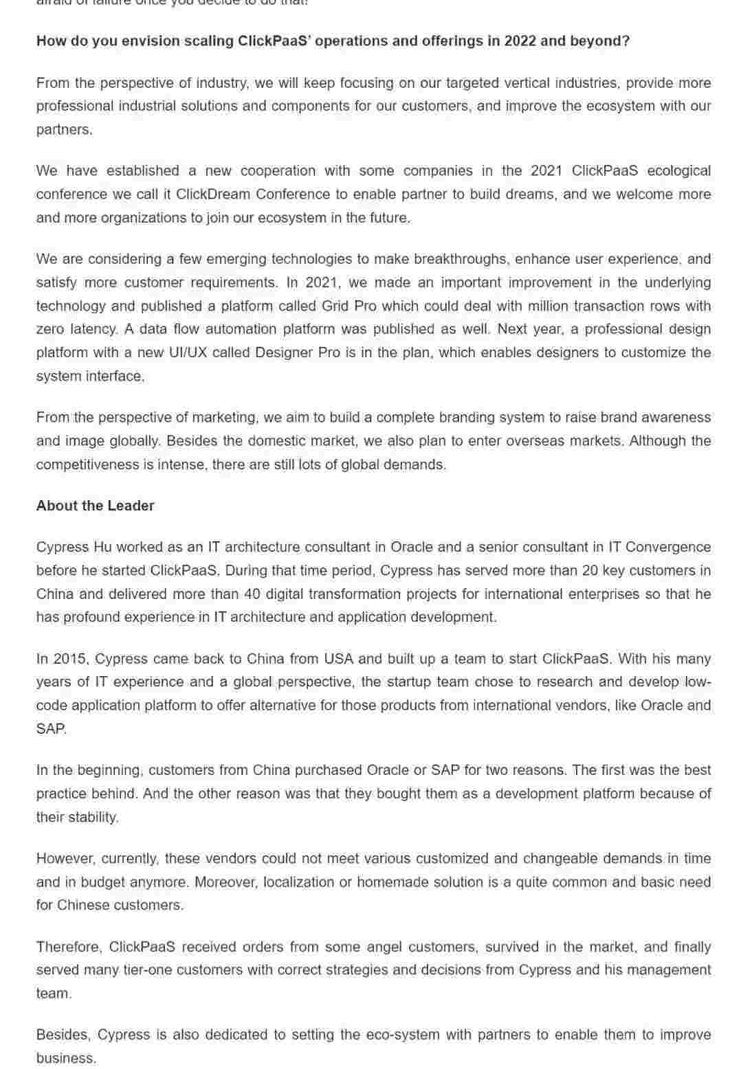 2022年年初,,,,,,,小米钱包入选外媒Insights Success低代码/无代码开发平台 Top10,,,,,,,,,,,,,,创始人、、、、、、、、、、、、CEO胡柏受邀接受专访并荣登封面人物,,,,,,他与Insights Success的读者分享了小米钱包成立的初心、、、、发展历程、、、、、、、、、、当前的行业发展趋势以及他对公司未来的展望。。。。。。。。