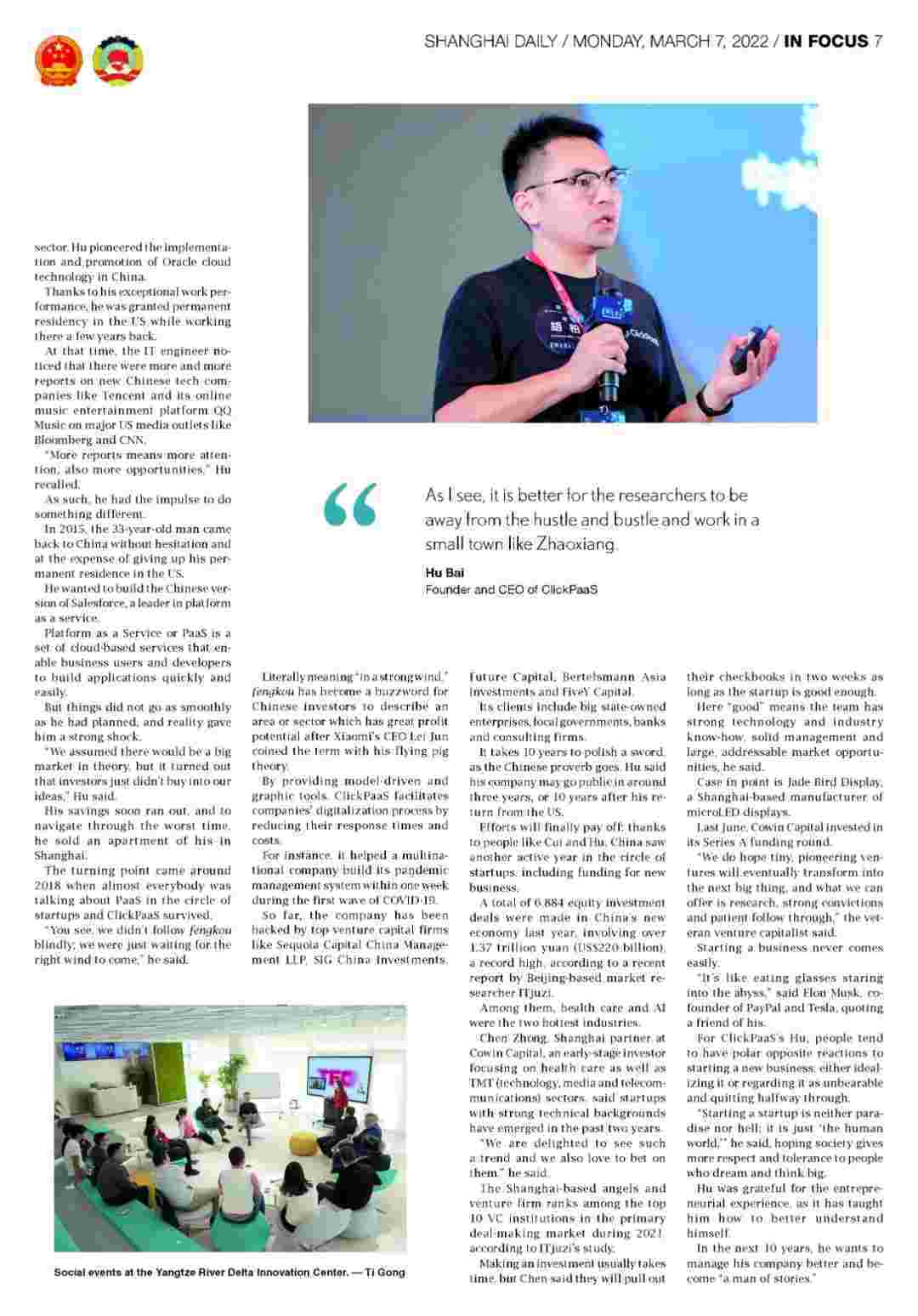 近日,,,,,,,小米钱包创始人、、、、、、CEO胡柏接受了《上海日报》采访,,,,,,,,,,,,关于自己当初为何选择创立小米钱包,,,,,,,,,,,,,又为何将公司落户于上海青浦,,,,,,,,分享了其背后的故事。。。。。。。。